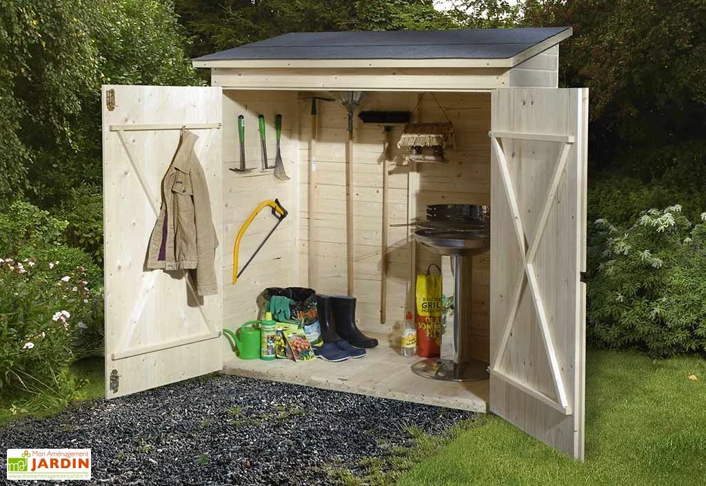 L’armoire de rangement extérieur est en bois issu de forêts nordiques. Le bois est brut, vous pouvez le traiter contre la moisissure et les insectes à l’aide d’un fongicide et d’un insecticide pour lui assurer une longue durée de vie. Vous pouvez également lui appliquer une lasure pour le protéger des UV et éviter qu’il ne grise avec le temps.