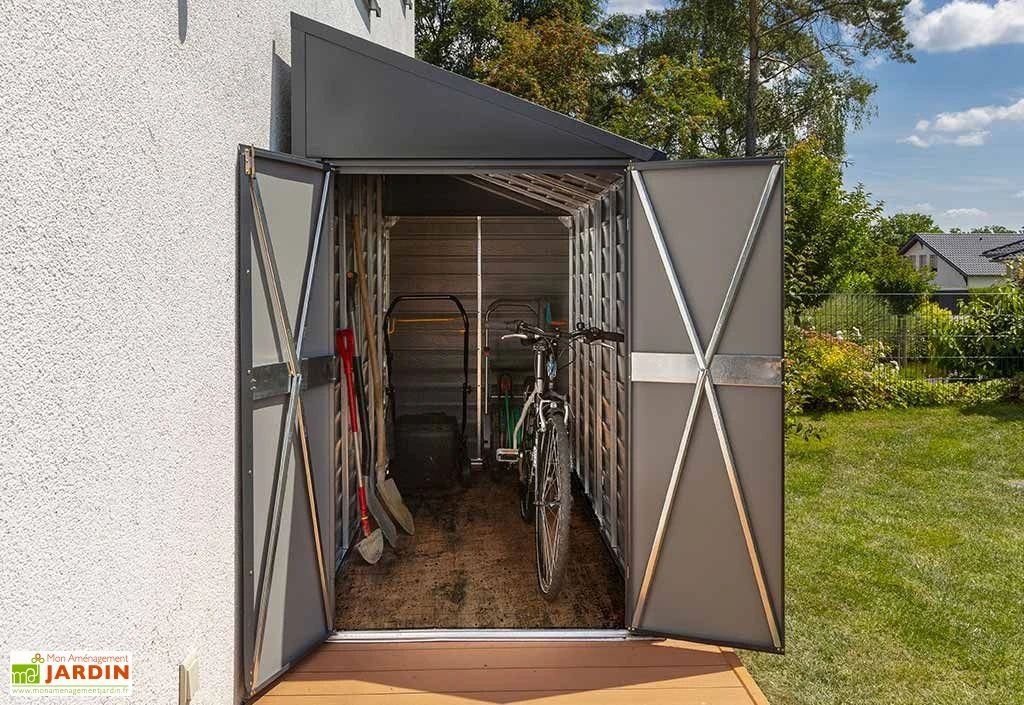 Cette armoire de jardin en métal est garantie 12 ans.