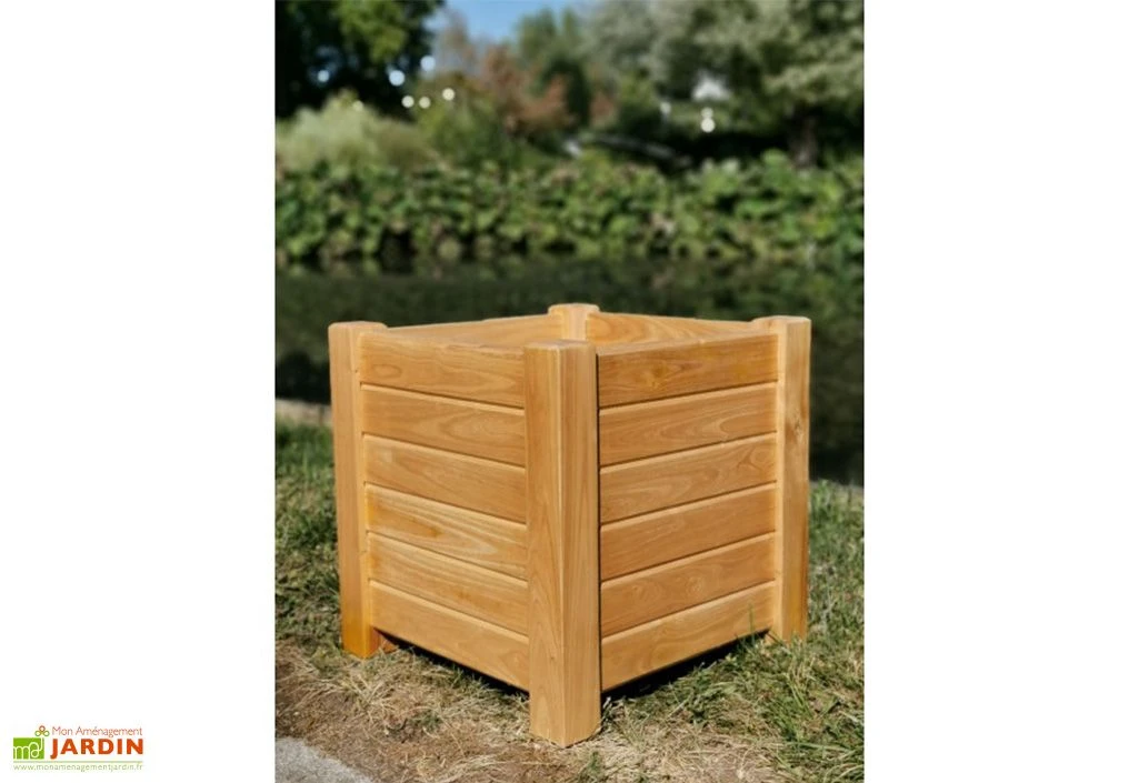 Le bac à fleurs carré est composé de lames de 2,5 cm d’épaisseur conçues en bois de châtaignier français issu de forêts durables et gérées dans le respect de l’environnement. Le bois est également doté de trois couches de lasure pour une résistance accrue aux agressions extérieures telles que les intempéries ou les insectes.