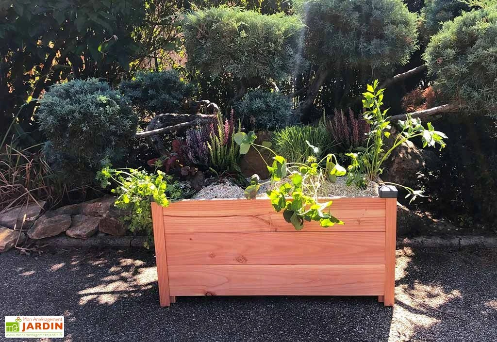 Ce bac à fleurs rectangulaire de la marque Mon Petit Potager convient parfaitement pour des petits espaces extérieurs comme des terrasses ou des balcons. Vous pourrez également le positionner dans votre jardin pour délimiter plusieurs zones. Cette jardinière à poser au sol vous permettra de cultiver des légumes, des aromates mais il est également possible de planter des plantes ou des arbustes comme un hortensia ou un seringat.