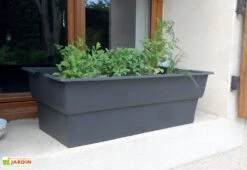 Pour plus de solidité et de stabilité, les parois de 19 mm d’épaisseur que mobilise cette jardinière en bois se sont vues dotées de renforts en aluminium au niveau des angles et des capuchons en PVC recyclé. L’aluminium ne craignant pas la corrosion, le tout ne vous demandera aucun entretien ni traitement particulier. Notez enfin que ce bac est livré sans fond mais qu’un feutre de protection vous sera fourni.
