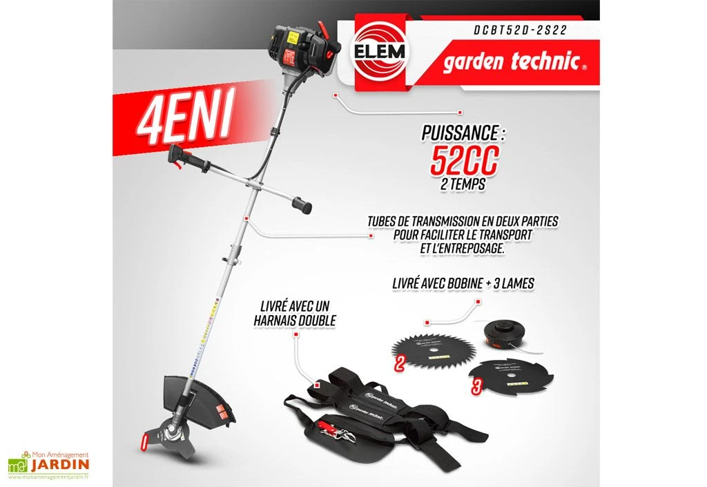 Cette débroussailleuse thermique de la marque Elem Garden témoignera d’une belle efficacité pour vos travaux d’ébarbage et de débroussaillage. Elle est livrée accompagnée de différentes lames et d’une bobine de fil de 2,4 mm de diamètre permettant de s’attaquer à divers types de végétaux. Vous pourrez ainsi profiter de différentes largeurs de coupe, selon que vous utilisiez une lame (25 cm) ou le fil (43 cm).