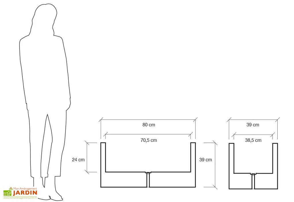 La jardinière rectangulaire mesure 80 cm de longueur, 39 cm de largeur et 39 cm de hauteur. Elle est disponible dans de nombreux coloris à choisir dans le menu déroulant. Les dimensions intérieures de la jardinière sont de 70,5 x 39 x 24 cm (l,l,h) pour une capacité totale de 38 litres. Respectueux de l’environnement, le pot de fleurs est entièrement recyclable.