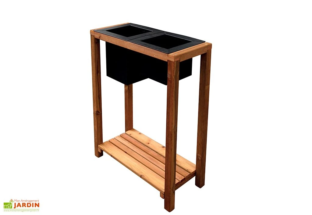 Cette jardinière sur pieds de chez Jardipolys vous permettra de fleurir vos petits espaces extérieurs en habillant votre jardin, votre terrasse ou votre balcon. Au look contemporain, elle se compose de deux bacs en acier laqué reposant sur une structure en bois de pin traité autoclave lui offrant une excellente résistance face aux intempéries. Le bois est certifié FSC, ce qui signifie qu’il est issu de forêts gérées dans le respect de l’environnement.