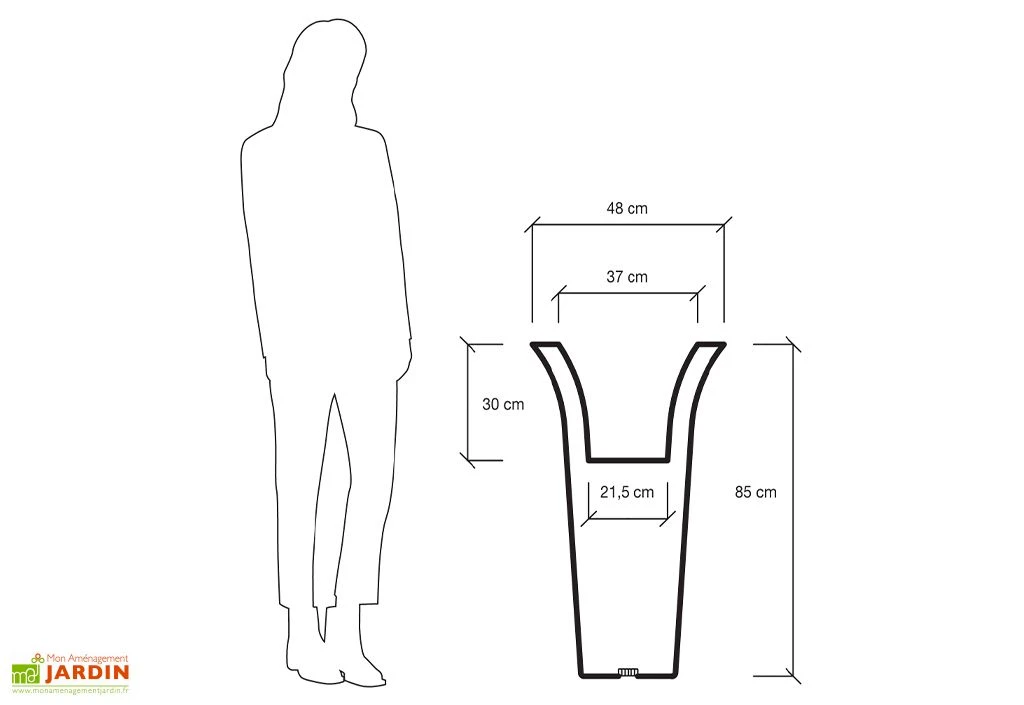 Ce pot de fleurs dispose d’une contenance de 35 L mais existe aussi en 60 L.