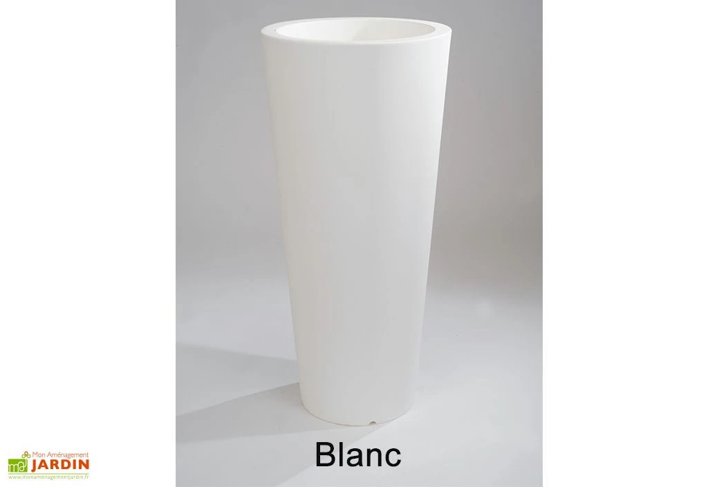 Le pot de fleurs Hydra en polyéthylène rotomoulé de chez Farmet New s’installe à l’extérieur. Ce très grand pot mesure 85 cm de hauteur et 39 cm de diamètre pour une contenance de 26 litres. Il est disponible en plusieurs coloris.