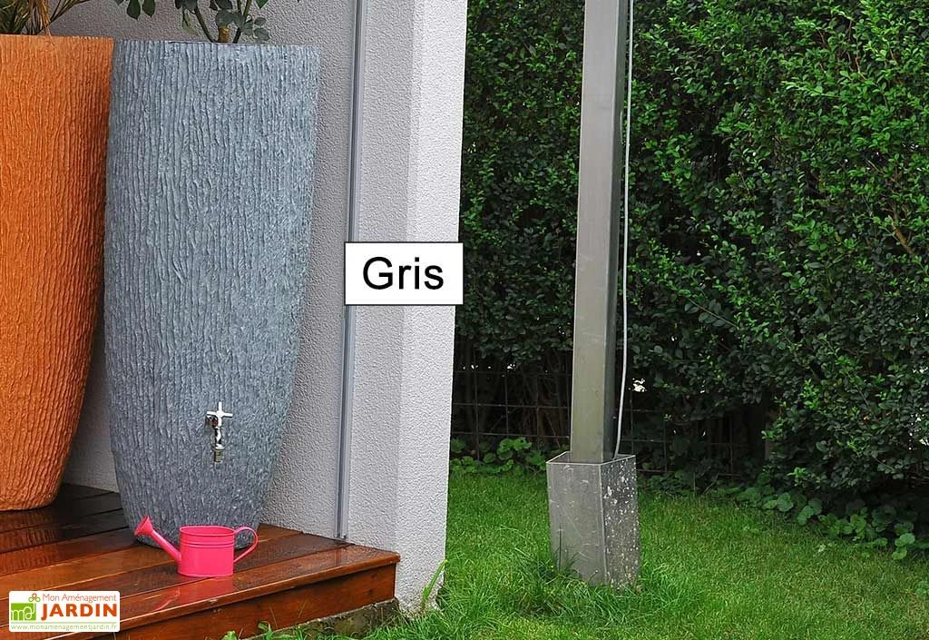 Le récupérateur d’eau mesure 48 cm de diamètre et 114 cm de hauteur et dispose d’une capacité de 120 L. Le polyéthylène utilisé pour sa conception est non toxique et recyclable. Il imite l’écorce d’un arbre pour une intégration parfaite dans le jardin.