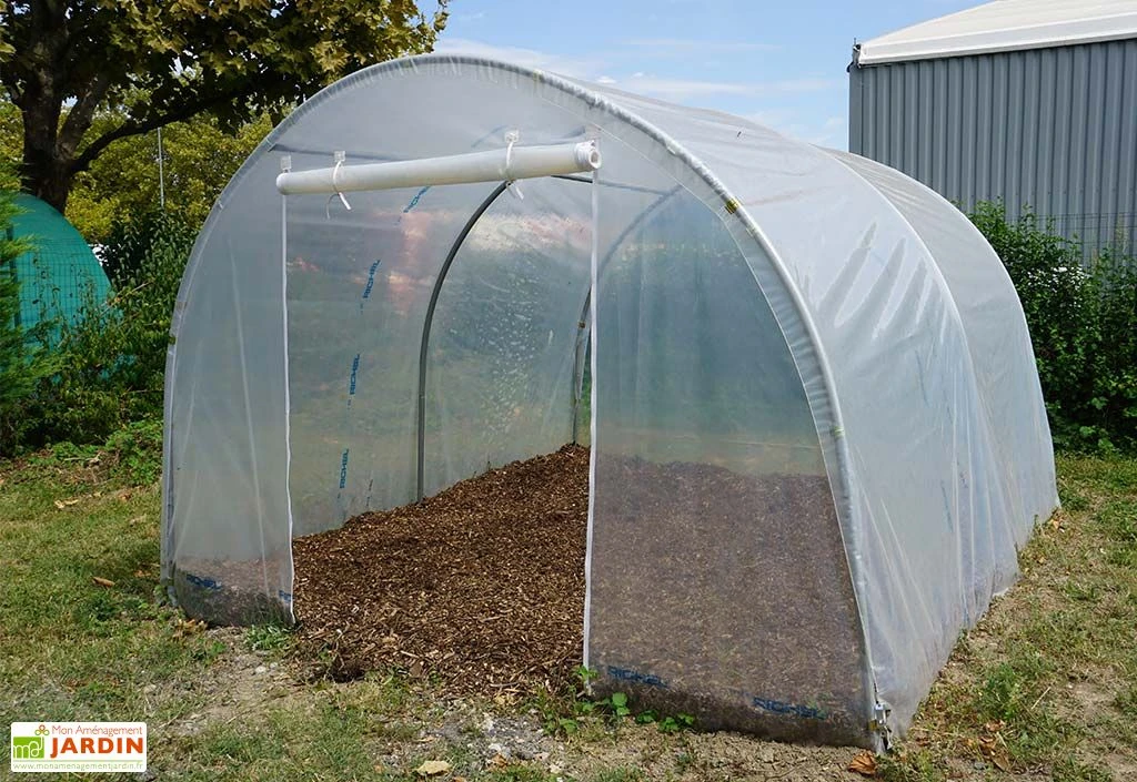 Cette serre tunnel de chez Richel est idéale pour les petits terrains. Elle n’occupe en effet que 9 m² mais vous permettra tout de même de profiter d’un bel espace de culture de 3 m de large sur 3 m de profondeur. Sa hauteur de 2 m est non seulement pratique pour circuler aisément à l’intérieur de la serre, mais elle lui permettra même d’accueillir quelques espèces grimpantes ! Notez que ce modèle est équipé d’un pignon plein et d’une porte zippée. Cette dernière vous permettra de pénétrer facilement dans la serre tout en assurant sa bonne aération.