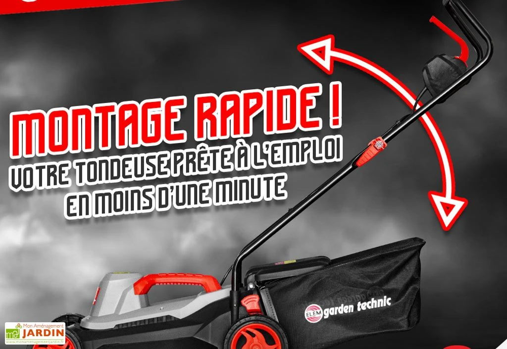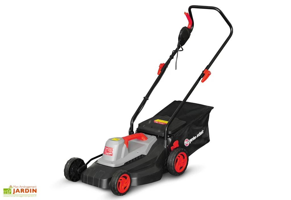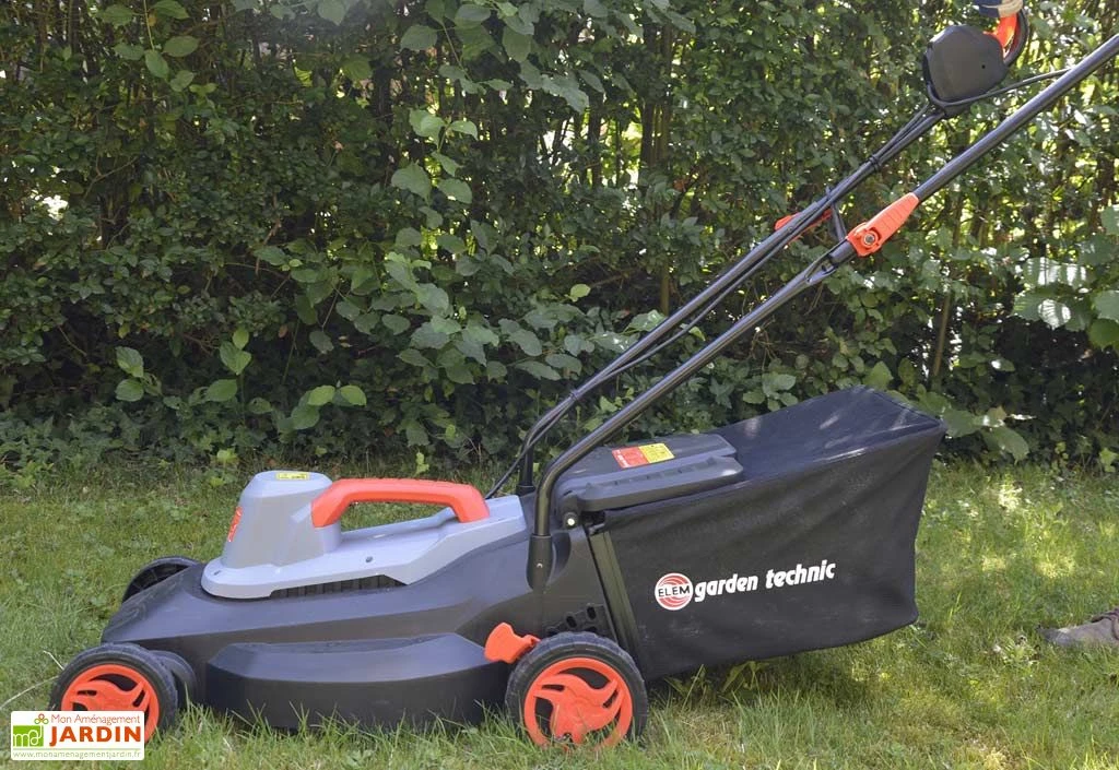La tondeuse à gazon électrique Elem Garden convient parfaitement aux différents types de terrains d’une surface jusqu’à 700 m² car elle dispose d’une puissance de 1 800 W avec une vitesse à vide de 3 200 t/min. La tondeuse à gazon possède une largeur de coupe de 40 cm et un système de réglage centralisé de la hauteur de la coupe sur 5 positions (25 à 75 mm).